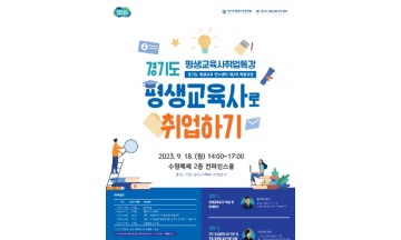 경기도평생교육진흥원은 오는 18일 ‘평생교육사 취업특강’을 수원메쎄 컨퍼런스룸에서 개최한다고 12일 밝혔다. 특강은 ‘경기도 평생교육사로 취업하기’라는 주제로 평생교육사 자격 취득 예정자 및 취업 희망자를 대상으로 평생교육사 일자리에 대해 공유할 계획이다. 1부는 ‘평생교육사의 역할 및 미래비전’을 주제로 윤여각 교수의 강연을 통해 평생교육사의 미래비전 및 역할에 대해 논할 예정이다. 이어지는 2부는 ‘지역 평생교육사의 역할’을 주제로 지역사회 평생교육사의 현장 직무 역량을 중점적으로 다룬다. 경기도평생교육진흥원은 광역 평생교육기관으로서 민간분야 평생교육 활성화를 위해 체계적인 연수프로그램을 운영 중
