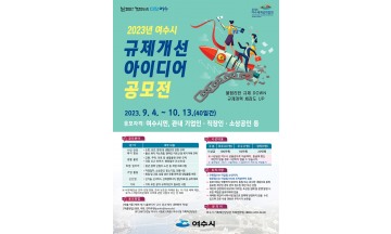 여수시(시장 정기명)는 시민이 체감하는 규제 개혁과 시민참여 소통시정 운영을 위해 ‘규제 개선 시민 아이디어 공모’를 진행한다고 5일 밝혔다.다음달 13일까지 공모할 수 있으며 여수시민 누구나 일상생활 속 규제와 기업활동을 저해하는 불합리한 사항 등에 대한 아이디어를 응모하면 된다. 공모분야는 ▲시민안전·복지 향상 ▲생활불편 ▲취업·일자리 ▲기업활동 ▲신산업 규제 등이다. 단, 단순 민원이나 진정, 다른 제안 제도를 통해 이미 제출된 의견은 제외된다.신청은 여수시 홈페이지 ‘고시공고’에 게시된 제안서를 작성해 방문, 우편, 이메일 중 하나로 하면 된다. 접수된 아이디어는 실행가능성과 창의성, 효율성․효과성 등 1