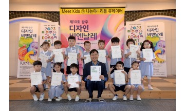 광주광역시(시장 강기정)는 제10회 광주디자인비엔날레 특별이벤트로 진행한 ‘더 리틀 큐레이터’ 첫 수료식을 5일 광주 워싱턴유치원에서 개최했다. ‘더 리틀 큐레이터’는 디자인 체험교육을 통해 어린이들의 문화예술에 대한 소양과 창의력 향상을 위해 마련됐다. 프로그램은 ▲더 리틀 큐레이터 소개 ▲2023 광주디자인비엔날레 콘텐츠 접하기 ▲나만의 아트 팝업북 만들기 ▲소감 작성 및 발표 순으로 진행됐다. 또 체험교육에 참여한 어린이들에게는 제10회 광주디자인비엔날레 ‘더 리틀 큐레이터’ 수료증이 주어졌다. 김광진 문화경제부시장은 “디자인 체험교육은 어린이들이 창의적 사고와 변화무쌍한 상상력을 펼칠 수 있는 기회”