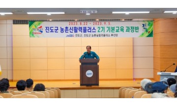 진도군이 농업인을 대상으로 농촌신활력플러스 사업 추진을 위한 기본교육을 실시한다.교육은 공동체 중심 융복합산업 생태계 구축을 통한 진도푸드 허브조성 기본계획을 이해하고 군민 주도형 사업 참여 유도를 위해 지난달 22일부터 9월 1일까지 주당 2회 진행한다.대상은 농업인과 영농조합법인‧작목반 등 교육을 희망하는 군민이며 전체 출석률 70% 이상 출석 시 수료 가능하고 수강료는 무료이다. 문의는 진도군 신활력플러스 추진단 교육 참가자에게는 신활력공동체사업 공모 참여자격과 신활력사업 참여의 특전이 주어진다.농촌 신활력플러스 사업은 지역개발사업 등으로 구축된 지역자산과 민간조직을 활용해 특화산업을 고도화하고 지역