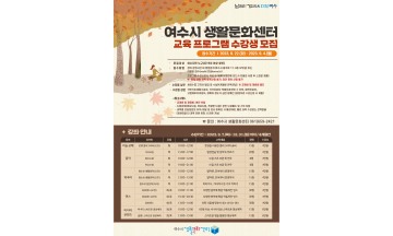 여수시 생활문화센터, 올 하반기 교육 프로그램 참여자 200명 모집