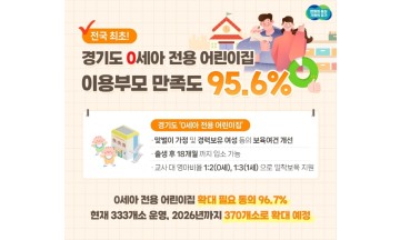 경기도, '0세아 전용 어린이집' 이용 부모 만족도 95.6%