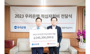 대한적십자사(회장 김철수)는 22일, 대한적십자사 서울사무소에서 대한적십자사 김철수 회장과 조병규 우리은행장이 참석한 가운데 2023년도 적십자회비 전달식을 개최했다고 밝혔다.   전달된 적십자회비는 복지사각지대에 놓인 취약계층과 다문화가족 지원, 국내외 재해 발생 때 긴급구호활동, 보건·안전 사업 등 인도주의 사업 전반을 추진하는 데 활용될 예정이다.   우리은행 관계자는 “상생 실천 및 사회적 가치 창출을 위한 적십자 인도주의 사업에 동참하게 되어 기쁘다” 며 “취약계층 및 복지사각지대에 놓인 어려운 이웃들을 지원할 수 있도록 ESG 경영에 더욱 앞장서겠다.”고 말했다.  우리은행은 적십자회비 참여 외에도 최근 자