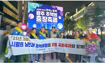 전남 함평군 대한민국 국화동호회가 ‘2025 대한민국 국향대전’의 성공을 위해 선제적 홍보에 나섰다.21일 함평군에 따르면 대한민국 국화동호회는 지난 15일 광주광역시 충장축제 개막식에서 ‘2025 대한민국 국향대전’ 홍보활동을 펼쳤다.이번 활동은 지난해에 이어 두 번째로 진행된 현장 홍보로, 국화동호회는 선제적인 홍보를 통해 더 많은 관광객을 유치하고 지역경제 활성화에 기여하고자 추진했다.국화동호회는 축제의 성공적인 개최와 관광객 유치를 위해 어깨띠를 착용하고 행사장 곳곳을 돌며 국화 작품 전시, 회전목마 포토존, 명품분재관 등 주요 콘텐츠를 소개하며 축제의 매력을 알렸다.김행민 대한민국 국화동호회장은 “바쁜