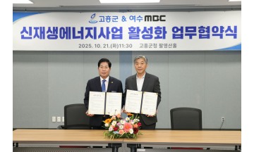 고흥군이 여수문화방송과 지역의 신재생에너지 활성화와 친환경 에너지 산업 육성을 위해 손을 맞잡았다.양 기관은 21일 상호 협력을 위한 업무협약(MOU)을 체결하고 ‘신재생에너지사업 협력체계’를 구축하기로 했다.이번 협약은 군이 추진하는 친환경 에너지 산업 육성과 지역경제 활성화라는 목표 아래, 신재생에너지 분야에서 양 기관이 적극 협력하기로 했다는 점에서 큰 의미가 있다.특히, 양 기관은 군이 중점 추진하는 해상풍력을 비롯한 다양한 신재생에너지 정책과 사업을 홍보해 지역 주민의 인식을 높이고 사업 참여를 확대하는 데 주력할 예정이다.협약에 따라 군은 신재생에너지사업 정책 추진과 행정 지원을 담당하고, 여수MBC는