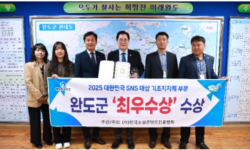 완도군이 지난 16일 열린 ‘제15회 2025 대한민국 SNS 대상’ 시상식에서 지난해에 이어 기초 지자체 부문 2년 연속 ‘최우수상’을 수상했다고 21일 밝혔다.‘대한민국 SNS 대상’은 (사)한국소셜콘텐츠진흥협회가 주체하고 과학기술정보통신부, 한국인플루언서산업협회, 의회정책아카데미가 후원하는 SNS 분야에서 권위 있는 상이다. 심사는 전국 지방자치단체·기관·기업의 SNS 운영 성과를 전문가, 사용자 분야로 나눠 진행됐다.특히 완도군은 군민 SNS 기자단 운영을 통한 소식 전달, 온·오프라인 이벤트 추진, 재밌고 유익한 숏폼 영상과 유튜브 콘텐츠 제작으로 팔로워의 관심과 참여도를 높인 점에서 높은 점수를 받았다.아울러 사용자