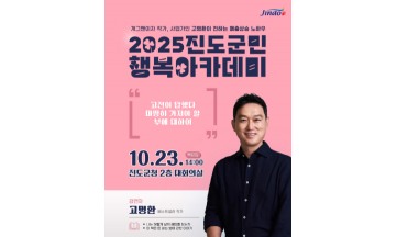 진도군은 오는 23일 오후 2시 진도군청 대회의실에서 개그맨 출신의 고명환 작가를 초청해 ‘진도 군민행복 아카데미’ 강연을 개최한다고 21일 밝혔다.이번 강연은 ‘고전이 답했다, 마땅히 가져야 할 부(富)에 대하여’라는 주제로 진행되며, 인생의 진정한 부(富)와 행복에 대해 통찰하는 시간이 될 것으로 기대된다.고명환 작가는 개그맨으로 활동할 당시 큰 교통사고를 겪은 후 사업가, 작가 등으로 활동 영역을 넓히며 새로운 삶을 일군 인물로 ‘인생 제2막의 성공 사례’로 알려져 있다.이번 강연에서는 고전 속 지혜를 현대적 시각으로 풀어내며, 군민들에게 행복과 풍요의 의미를 전할 예정이다.김희수 진도군수는 “이번 진도 군민행복