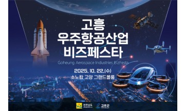 고흥군(군수 공영민)은 오는 22일 경기도 고양시 소노캄 호텔에서 2025 고흥 우주항공산업 비즈 페스타를 개최한다고 13일 밝혔다.이번 행사는 국내외 우주항공 및 드론 관련 기업, 연구기관, 투자자 등 200여 명이 참여한 가운데 고흥의 미래산업 비전과 발전 전략을 공유하고 토론할 계획이다.주요 프로그램은 1부에서 고흥군 투자유치 홍보영상 상영, 업무협약(MOU) 체결, 전라남도·고흥군의 우주 및 드론·도심항공교통(UAM) 산업 투자 제안이 이뤄지고, 2부에서는 우주항공산업 관련 유명 연사를 초빙해 고흥의 미래전략산업 비전을 발표하는 포럼 형식으로 진행된다.군은 이번 행사를 통해 전남권 최대 성장 잠재력을 자랑하는 고흥우주발