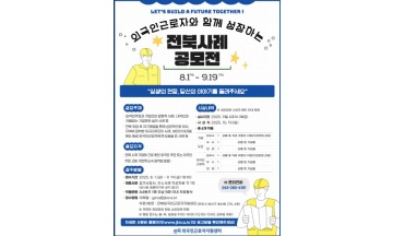 전북외국인근로자지원센터가 8월 1일부터 9월 19일까지 전특별자치도 소재 기업에 근로 중인 외국인근로자와 고용주를 대상으로 '외국인근로자와 함께 성장하는 전북 사례 공모전'을 주최한다고 6일 밝혔다. 해당 공모전은 외국인근로자를 단순 일꾼이 아닌 ‘동반자’로서 우리 지역사회의 일원으로 함께 성장한 모범사례를 발굴·전파하여 ‘내·외국인 차별없이 일하고 싶은 전북환경’을 조성하기 위해 마련됐다. 접수된 사례는 외부 심사위원의 심사를 거쳐 10월 19일(일요일), 전북국제협력진흥원에서 주최하는 'MY전북세계인축제'를 통해 시상할 계획이며, 최우수상 2명, 우수상 2명, 장려상 2명에게 진흥원장 명의의 격려패가 수여된다.