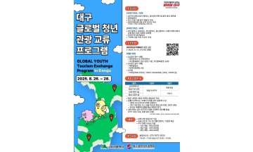 대구광역시와 대구관광협회는 국제 관광교류 활성화를 위해 ‘제1회 대구 글로벌 청년 관광교류 프로그램’을 개최하고, 오는 8월 13일까지 외국인 유학생과 지역 대학생 참가자를 모집한다.이번 행사는 8월 26일부터 28일까지 2박 3일간 진행되며, 외국인 유학생과 지역 대학생 간 교류의 기회를 제공하고, 대구의 글로벌 관광도시 이미지를 높이기 위해 마련됐다.모집 대상은 대구·경북·부산·울산 지역 대학에 재학 중인 외국인 유학생 30명과 지역 대학생 10명이다.주요 프로그램은 오리엔테이션 및 청년 교류의 밤 행사, 미션투어, 청년 교류 세션 등으로 구성되며, 참가자들은 다양한 활동을 통해 상호 이해를 넓히고, 대구를 재발견하는