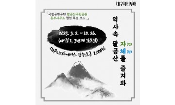 대구광역시는 팔공산국립공원동부사무소와 협업해 3월부터 10월까지 매월 1, 3, 4번째 일요일에 1천 원으로 팔공산을 즐길 수 있는 대구시티투어 특별노선을 운영한다.역사 속 팔공산 명소를 돌아보며 자연과 체험 프로그램을 함께 즐길 수 있는 ‘자체투어’와, 팔공산 깃대종 담비, 군위 아미타여래삼존 석굴, 한밤마을을 연결한 ‘담아밤투어’로 운영된다.‘자체투어’는 매월 1, 3번째 일요일에 운영되며, 팔공산의 역사적 가치와 문화유산을 직접 경험할 수 있는 좋은 기회를 제공한다.삼국시대에 축조된 불로동 고분군을 시작으로, 신라시대에 창건된 동화사, 고려 초조대장경을 봉안했던 부인사 등을 둘러본다.동화사에서는 의병 활쏘기