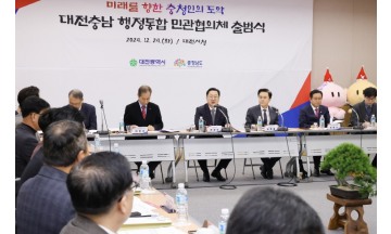 대전시와 충남도의 통합 추진이 급물살을 타고 있다.지난달 통합 추진 선언 1개월여 만에 주민 의견을 수렴하고 공감대를 형성하며, 통합 법률안을 마련할 ‘컨트롤타워’가 첫발을 뗐다.시는 대전·충남 행정통합 민관협의체가 24일 대전시청 세미나실에서 출범식을 갖고 가동을 본격 시작했다고 밝혔다.이장우 대전시장과 김태흠 충남지사 등 50여 명이 참석한 가운데 연 이날 출범식은 위촉장 수여, 1차 회의 등의 순으로 진행했다.시와 충남도는 수도권에 이은 대한민국 2위 초광역 경제권을 구축, 글로벌 경쟁력을 강화하기 위해 지난달 21일 1989년 분리 35년 만에 통합 추진을 선언했다.이번 민관협의체는 양 지역 광역의회 의원과 기초자