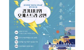 경기문화재단 경기도어린이박물관은 연말을 맞이하여 2024년 12월 14일에 경기아트센터 경기국악원 협력프로그램인 가족 국악 콘서트 〈운우풍뢰(雲雨風雷)〉를 공연한다. 이번 공연은 경기국악원의 ‘찾아가는 국악 소풍’ 시리즈의 일환으로 지난 어린이날 선보인 〈어린이는 행복이다〉 공연에 이어 경기도어린이박물관과 경기국악원이 협력하여 진행하는 두 번째 국악 공연이다.경기국악원에 상주하는 국악 관현악 전문 단체인 경기시나위오케스트라는 이번 공연 '운우풍뢰(雲雨風雷)'에서 사물연희를 중심으로 자연의 소리를 형상화한 국악 콘서트를 선보인다. 북소리는 하늘을 유려하게 떠다니는 구름(雲), 장구 소리는 빗방울이 떨어지는