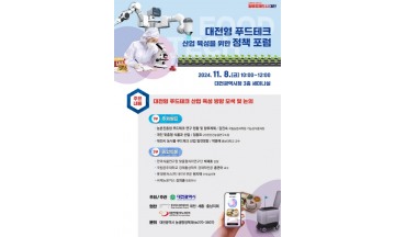 대전시는 8일 오전 10시 대전시청 세미나실(3층)에서 ‘푸드테크 정책포럼’을 개최한다. 푸드테크는 식품(Food)과 기술(Technology)의 합성어로 식품의 생산․유통․소비 전반에 바이오, 인공지능(AI), 빅데이터, 사물인터넷(IoT), 3D프린팅 등과 같은 혁신 기술이 결합된 신산업을 말한다. 이번 포럼은‘푸드테크 산업의 미래와 대전형 푸드테크 산업 육성 방향’이라는 주제로 진행된다. 포럼은 ▲김진숙 국립농업과학원 기능성식품과장의 '농촌진흥청 푸드테크 연구 현황 및 향후 계획' ▲임용표 (사)친인간농업연구소장의 '개인 맞춤형 식품과 산업' ▲박종태 충남대학교 교수(한국푸드테크협의회 대전‧세종‧충남지회 지회장)의‘대전시 농