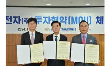 삼성전자의 최첨단·대규모 반도체 패키징 공정 설비가 2027년까지 충남 천안에 설치된다. 김태흠 지사는 12일 도청 상황실에서 남석우 삼성전자 사장, 박상돈 천안시장과 투자양해각서(MOU)를 체결했다. MOU에 따르면, 삼성전자는 천안 제3일반산업단지 삼성디스플레이 28만㎡ 부지 내 건물을 임대해 다음 달부터 2027년 12월까지 반도체 패키징 공정 설비를 설치, HBM 등을 생산할 계획이다. 후공정으로 불리는 패키징은 반도체 제조 마지막 단계로, 웨이퍼의 반도체 칩들을 하나씩 낱개로 자른 후, 칩 외부의 시스템과 신호를 주고 받을 수 있도록 전기적으로 연결하고 외부 환경으로부터 칩을 안전하게 보호하는 작업을 말한다. HBM은 높
