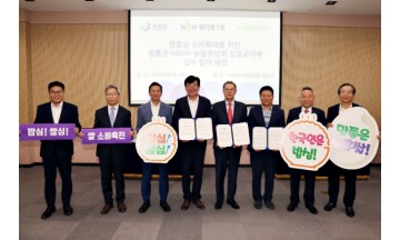 장흥군과 엠디엠그룹, 농협중앙회 장흥군지부이 장흥쌀의 소비 촉진과 지역 경제 활성화에 협력하기로 업무협약을 맺었다.5일 서울 엠디엠그룹 본사에서 열린 업무협약식에는 김성 장흥군수, 문주현 엠디엠그룹 회장, 전종순 농협중앙회 장흥군지부장이 참석했다.업무협약 참여 기관과 기업들은 장흥쌀의 브랜드 가치를 높이고, 소비를 촉진하기 위한 다양한 공동 활동을 추진할 계획이다.엠디엠그룹은 장흥쌀을 적극적으로 홍보하고, 자사 채널을 통해 장흥쌀의 판매를 확대하기로 했다.특히, 문주현 회장은 농촌 쌀 소비 일환으로 그룹 전직원들에게 쌀 10kg 5천개를 후생복지에 후원하여 아침밥먹기 운동참여를 독려하기로 했다.업무협약을 계