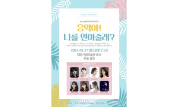대전시립미술관은 2024 특별기획 DMA(DAEJEON MUSEUM OF ART) 버스킹 첫 공연으로 8월 31일 오후 2시 30분부터 대전시립미술관 로비에서 청소년을 위한 뮤직테라피 ‘음악아! 나를 안아줄래?’를 개최한다. 협동조합한국청년예술가들이 오페라부터 드라마 ‘선재업고튀어’의 OST ‘소나기’까지 다양한 공연을 펼칠 예정이며 관람료는 무료이다.  한편, 대전시립미술관은 누구나 편하게 와서 공연과 미술을 함께 즐길 수 있는 미술관을 만들기 위해 버스킹 참가자를 상시 모집한다.  모집 대상은 대전 지역 문화예술 전공자 및 문화예술 활동을 희망하는 개인 또는 2인 이상의 단체로 음악, 기악, 전통, 퍼포먼스 등 시민의 참여를 유도할 수 있