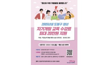 "너의 새로운 출발을 응원해" 도봉구, 19세 청년에게 교육 수강료 최대 20만원 지원