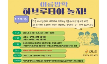 제주 제남도서관, 2024 늘봄학교 여름방학 프로그램 ‘하브루타야 놀자!’ 참가자모집