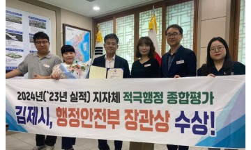 김제시, 적극행정 종합평가 행정안전부 장관상 수상