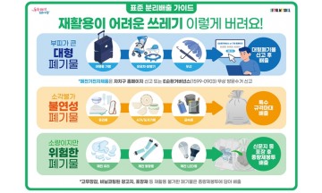 서울시는 기존 재활용품 분류 체계 중 ‘재활용이 어려운 품목’의 처리 방안 기준을 정비해 재활용품 배출에 대한 시민 혼선을 방지하고, 재활용품의 고품질 자원화에 나선다. 재활용품은 환경부령 '재활용가능자원의 분리수거 등에 관한 지침'에 따라 분류됐으나, 일부 세부 품목 중 예외로 존재하는 ‘비해당 품목’의 처리 방안에 대한 기준이 명확히 제시되지 않아 혼선을 빚어왔다. 이에 서울시는 자치구마다 제각각이었던 ‘재활용이 어려운 품목’의 배출기준을 통일하는 표준안을 마련하고, 25개 자치구에 본격적인 안내에 나섰다. 시는 불연성 여부, 크기, 위험성, 소각 가능성 등을 기준으로 분리배출 기준을 통일하고, 최근 언론과 S