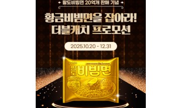 팔도가 팔도비빔면과 함께하는 ‘금(金) 60돈 증정 프로모션’을 진행한다고 20일 밝혔다. 팔도에 따르면 이번 이벤트는 팔도비빔면 20억개 판매 기념으로 기획됐다. 팔도는 특별 프로모션을 맞아 한정판 팔도비빔면을 선보인다. 전용 패키지를 적용해 이벤트 참여와 보상 혜택을 강조했다. 제품 번들에 황금쿠폰이 동봉돼 구매 고객은 두 가지 이벤트에 참여 가능하다다. 우선 패키지 QR코드를 스캔해 난수 번호를 입력하면 추첨을 통해 △금 20돈(1명) △금 1돈(20명) △백화점 상품권(200명) △제품교환권(8888명)을 증정한다. 팔도비빔면과 어울리는 지역 특산물 투표 이벤트도 진행된다. 선정 품목은 ‘팔도비빔면 계절 에디션’ 소재로 검