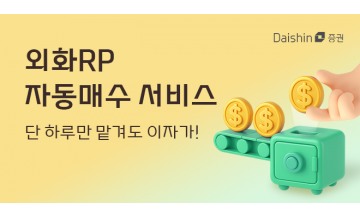 대신증권은 자사 거래 플랫폼인 사이보스(MTS)와 크레온(HTS)에 '외화 RP 자동 매수 서비스'를 도입했다고 20일 밝혔다.이 서비스는 미국 달러로 주식에 투자한 후 남은 달러 예수금을 자동으로 환매조건부채권(RP)에 투자할 수 있도록 지원한다.자동으로 투자되는 미국 달러 RP의 금리는 세전 기준 연 3.75%로, 재투자 기간은 7일이다. 매수된 RP는 매도를 통해 달러 자금을 자유롭게 회수 및 운용할 수 있다.서비스는 대신증권 외화증권매매상품 계좌 내 달러 예수금을 활용하며, 매 영업일 오후 4시에 최소 1 달러에서 최대 10만 달러까지 자동 매수가 이뤄진다.김은수 대신증권 플랫폼솔루션부장은 "이번 서비스는 잔여 달러를 자동으로 RP에