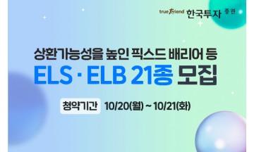 한국투자증권이 주가연계증권(ELS)과 주가연계파생결합사채(ELB) 21종을 출시한다고 20일 밝혔다.이번에 출시된 TRUE ELS 18224회는 테슬라와 팔란티어를 기초 자산으로 하는 3년 만기 픽스드 배리어(Fixed Barrier)형 상품이다. 매 6개월마다 조기 상환 여부를 평가해 기초 자산이 최초 기준가의 80% 이상이면 연 10%의 수익과 함께 조기 상환된다. 기초 자산 중 하나라도 최초 기준가의 18% 미만으로 하락하지 않으면 조기 상환 조건을 달성하지 못한 경우에도 만기 시 약정한 수익이 지급된다. TRUE ELS 18225회는 팔란티어와 에이엠디를 기초 자산으로 하는 3년 만기 스텝다운형 상품이다. 스텝다운형은 조기 상환 여부를 판단하는 기준인 배