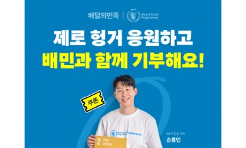 배달의민족(이하 배민) 운영사 우아한형제들이 세계 식량의 날을 기념해 ‘WFP(World Food Programme, 유엔세계식량계획)’과 식사 지원 모금캠페인 ‘함께 먹으면 제로 헝거 프로모션’을 진행한다. 16일 우아한형제들에 따르면 세계 식량의 날은 유엔식량농업기구(FAO)가 식량안보에 대한 대중인식 제고, 식량문제 해결을 위한 국제사회의 농업 개발협력 노력 촉진 등을 위해 지정한 기념일이다. WFP는 기부에 참여한 고객 중 9명을 추첨해 WFP 친선대사인 손흥민 축구 국가대표팀 선수의 사인이 담긴 티셔츠를 증정한다. 김중현 우아한형제들 가치경영실장은 "세계 식량의 날을 맞아 WFP와 협력해 식량 문제 해결을 위한 캠페