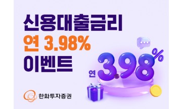 한화투자증권, 신용대출금리 연 3.98% 이벤트 실시