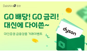 대신증권은 고배당·고금리 금융 상품에 가입한 고객을 대상으로 경품을 제공하는 '고배당∙고금리 기대상품 대신에 다~이쓴' 이벤트를 진행한다고 14일 밝혔다.이번 행사는 자산 가격 변동성 확대 속에서도 안정적인 현금 흐름을 추구하는 투자자들을 위한 금융 상품을 알리기 위해 마련됐다. 이벤트 대상 상품은 대신증권이 엄선한 채권 4종과 펀드 12종으로, 해당 상품 중 1개 이상 가입하면 자동으로 경품 추첨 대상이 된다.가입 금액에 따라 다이슨 공기청정기·청소기·드라이어와 올리브영 상품권 등의 경품이 차등 제공된다. 100만원 이상 가입 고객 1000명에게는 1만원 펀드 쿠폰도 지급된다.이벤트는 11월 28일까지 진행되며, 대신증권
