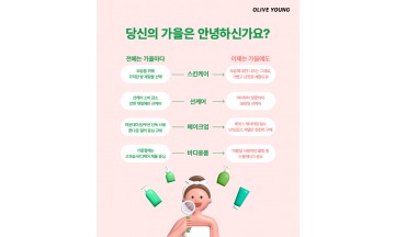 CJ올리브영(이하 '올리브영')이 내·외부 데이터를 활용한 '트렌드 리포트'를 정기 발간한다고 14일 밝혔다.올리브영은 기존 연 1회 제작하던 '뷰티·헬스 트렌드 키워드' 외에 더 세부적이고 다양한 분석을 담은 리포트를 선보인다.리포트는 올리브영 내부 데이터를 활용해 K뷰티 소비 패턴 분석과 같은 현상 제시부터 산업 전반의 미래 조망 등 광범위한 주제로 기획된다. 올리브영은 누구나 쉽게 이해할 수 있도록 인포그래픽 등을 활용해 리포트를 제작할 예정이다. 첫 콘텐츠로 선보인 기후 분석 리포트 '당신의 가을은 안녕하신가요?'는 최근 5개년 치 내부 데이터와 외부 기후 데이터를 결합해 분석한 자료다. 9월에도 늦더위가 이어지는