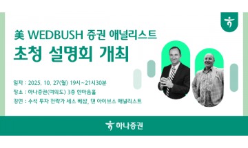 하나증권은 오는 27일 미국 증권사 웨드부시(Wedbush)의 애널리스트 2명을 초청해 투자 인사이트를 공유하는 '하나 x 웨드부시 글로벌 인사이트: 넥스트 웨이브' 세미나를 개최한다고 14일 밝혔다.이번 세미나는 미국 주식 투자에 관심 있는 고객이라면 누구나 참여할 수 있으며, 글로벌 시장의 최신 트렌드와 유망 투자 아이디어를 직접 들을 수 있는 기회다.강연자는 웨드부시 증권 리서치 센터 수석 전략가인 세스 바샴(Seth Basham)과 테슬라로 유명세를 얻고 있는 스타 애널리스트 댄 아이브스(Daniel Ives)다. 1부는 세스 바샴이 '미국주식 시장 전망과 AI의 미래'를 주제로 강연을 하고, 2부에서는 댄 아이브스가 '기술 분야 및 AI 전망'에