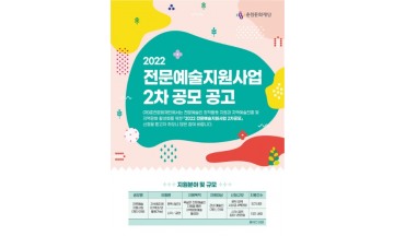 춘천문화재단(이사장 최돈선)은 지역문화예술 활성화 및 지역 예술인들의 안정적 창작환경 조성을 위해 2022 창작공간 임차료 지원사업과 전문예술지원사업 2차 지원자를 모집한다고 10일 밝혔다. 창작공간 임차료 지원사업은 관리비, 운영비 등을 제외한 순 공간 임차료로 공간 당 최대 월 40만 원, 최장 9개월(2022년 7월~2023년 3월) 지원한다. 단, 2022년 1차 선정자는 지원이 불가하다. 지원 공간 유형은 작업실, 연습실, 문화예술관련 물품·장비보관 창고, 소극장, 소갤러리이다. 전문예술지원사업은 문학, 시각, 공연 분야로 지원하며, 문학 장르 정액 400만원, 시각과 공연 장르 최대 1000만원으로 신청할 수 있다. 또한 사업개최지가 지