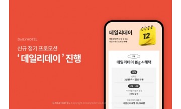 야놀자가 운영하는 데일리호텔이 신규 정기 프로모션 ‘데일리데이’를 진행한다고 12일 밝혔다. 데일리데이는 데일리호텔이 차별화된 브랜드 경험을 제공하기 위해 마련한 정기 이벤트다. 프로모션 첫 오픈을 기념해 이번 달은 오늘부터 3일간 진행되며, 오는 6월부터는 데일리호텔 브랜드명에서 착안해 매달 1일, 2일 양일 간 다양한 혜택을 선보인다. 데일리호텔은 이번 프로모션을 통해 국내 숙소 4만 원 이상 결제 시 사용 가능한 2만 원 할인 쿠폰을 1,212명에게 선착순 지급한다. 또한, 그랜드 하얏트 서울, 파라다이스시티 등 10만 원 이상의 프리미엄 호텔 및 펜션을 이용하는 고객 1,212명에게 10%(최대 2만 원) 할인 쿠폰을 선착순 제