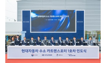 국내 최초의 수소 카트랜스포터 차량(차량 운반용 트럭)이 평택항을 달린다.현대자동차(005380)는 지난 28일 평택항 수소교통복합기지 일대에서 현대차 국내사업본부장 정유석 부사장, 현대차 전략기획실장 김동욱 부사장, 환경부 대기환경정책관실 오일영 정책관, 정장선 평택시장, 더불어민주당 홍기원 국회의원(경기 평택갑), 더불어민주당 이병진 국회의원(경기 평택을), 현대글로비스 SCM사업부장 조삼현 상무 등이 참석한 가운데 '엑시언트 수소전기트럭 카트랜스포터'(이하 엑시언트 수소 카트랜스포터) 1호차 인도식을 가졌다고 29일 밝혔다.이번 차량 전달은 현재 평택항 일대에서 운행 중인 디젤 카트랜스포터 차량을 수소 기반 차량으
